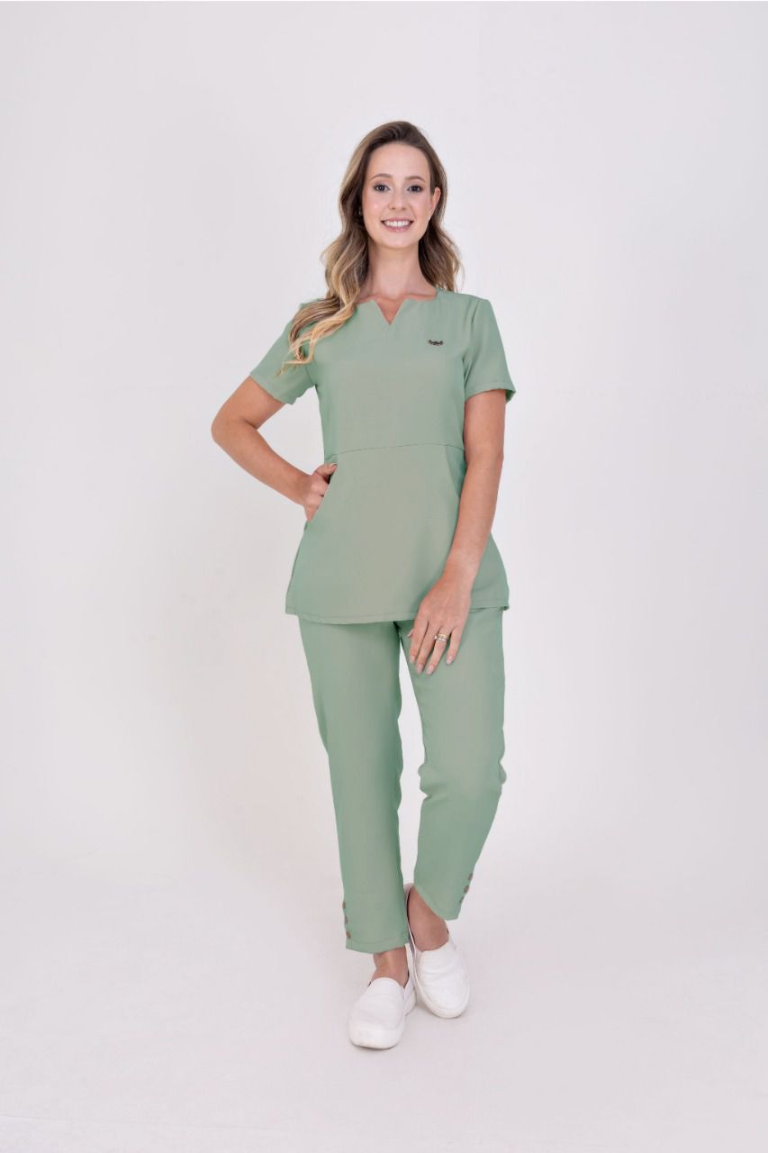 O scrub Munique possui blusa mais alongada e acinturada, desta forma evitando marcar as linhas do quadril. Confeccionado em tecido de alfaiataria com alta porcentagem de elastano (90,4% POLIESTER + 9,6% ELASTANO), com processo de alta costura, é a peça que você passa o dia sem sentir! Puro conforto.